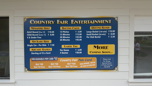 Country fair is a simple little amusement park, it has go karts, batting cages, mini golf, driving range, an arcade, and a newest addition to the park a cool new version on bumper cars were you crash and spin if you hit people in the right spot on there bumper car. Its worth the trip if you live locally and are looking for simple time, it isnt over priced but its also not the cheapest a single ride on a go kart is 7.50 and if you are riding with your child expect a fifteen dollar ride, there not include as a one car price, its per rider. The arcade has some classic games and a few new ones as well. The kids enjoy it one down fall lacks luster of other amusement styled parks, and tho is not intended to compete with other amusement parks still you will most likely if you are trying to enjoy the whole day end up spending close to other amusement park prices. Overall its Quick fun and always a good time, not over priced still not cheap. Personally my son loves the place so kids have a blast