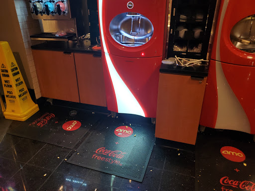 Went to a 2:30 pm showing and this theater was so dirty. The floors in front of concessions was full of popcorn and soda area was very wet and sticky with no warning signs out. The hallways leading to the theaters were also nasty. This all shocked me as I only go to AMC theaters and they are usually clean; this was my first time at this one and probably last. The staff was not pleasant; I was in the Stubs premier line but that did not matter here as they overlooked me. Finally at the counter and got 2 items that should have been $17 but was told it was $25, asked why and was told to look at the prices on the board, again I asked why so much and she rudely said "Maam your nachos is abt $14 and that candy is $4" then stopped to look at me. Again I asked why $25, then she discovered she added a small popcorn in error. No apology, NOTHING!