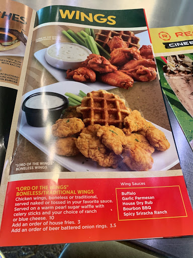 Food is mediocre at best. Usually overcooked and considering how expensive it is, the LEAST the kitchen can do is cook the mediocre overpriced food properly. Waitresses are always sweet but not great at their jobs :( Popcorn always tastes burned even if it looks normal. They dont refill sodas for free ( ABSURD especially at THOSE PRICES!) And of course....it is NOT clean. I have never been there when the bathrooms do not smell of urine, when I was not sticking to the theater floor, seats, arm rests etc. The idea of this place is tremendous.....but the people who are in charge of running it seem to do the least possible food wise and every other way ( cleanliness included) that they can possibly do....and it shows. Really stinks because we wanted to LOVE this place. We have been several times since they opened because we keep thinking they are going to fix this stuff....but it just keeps getting worse. :(