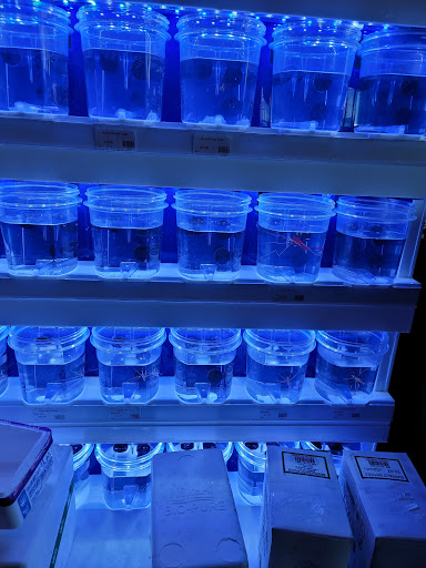 Located right across Capital Blvd. from Triangle Town Center, The Fish Room is an excellent saltwater aquarium store. I have bought from The Fish Room twice now (a 4-inch Raccoon butterfly for only $30-something and an orange diamond goby!) and have had a great experience there each time. The staff are knowledgeable and friendly, and their premises are clean and beautifully maintained. While small, they have three good rows of tanks; therefore they actually have as many fish as most other aquarium stores do, and often a better variety. They carry everything from damsels, cardinals, and Royal Grammas to Desjardini sailfin tangs, dwarf and large angelfish, and butterflyfish. Their coral selection is good as well, and they do carry inverts. Their display tanks are beautiful, and check out their website for their Livestock List. They do not appear to keep new aquariums in stock (at least not in the show area), but you can certainly order from them. They also have a good selection of live rock and are one of the few locations to carry dry rock. Again, highly recommended.