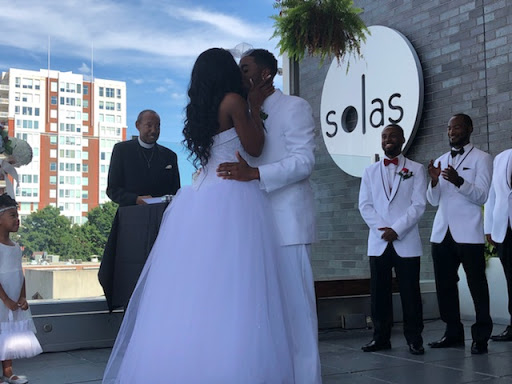Solas made all of our dreams for our wedding come to life! I must say when someone first suggested Solas as a venue to me I was very skeptical. I had been to Solas several times for night-life and I could not imagine it as a wedding venue. We researched and visited venue after venue and were not finding what we were looking for. We did not want a traditional ballroom wedding. We wanted it to be a laid back and fun event, yet we also wanted it to be sophisticated. It was also important to us to have everything in-house in a venue. After meeting with Miriam, the event coordinator at Solas, several times we decided to put our trust in her. She and her staff did not disappoint!! They went above and beyond to make sure everything on our wedding day went perfectly! We loved the diversity that Solas offered. We used the rooftop for our ceremony location. It was absolutely perfect! One of the things that attracted us to Solas was that the rooftop could be closed in the event of rain. That is always such a concern with having an outdoor wedding. From there our guest were ushered to the patio on the first floor for a cocktail hour. The reception was held back on the rooftop. Miriams team transformed the space within the cocktail hour. We had a buffet for our guest and also offered a carving station. The food was great. The staff had a plate made for us and made sure we took a few minutes to sit down and eat. From there the dancing and party started. We had a sparkler exit out of the front door and left in a rickshaw with a "Just Married" sign attached. Everything went so smoothly and I know it was due to Miriam. She was event coordinator, staff director and wedding director all in one! To add our own touch to the venue we hung lighting over the dance floor. We also made pillows in our wedding colors to add color to the cabanas. The venue itself is so pretty with all the greenery that we did not have to do much in the way of decorating. That was a great plus for our budget! We asked all of our wedding guest to send us photos from their own wedding or just their favorite photos of themselves with the bride/groom and turned them into a slideshow that played on all the tvs during the reception. It was a big hit! Our guest loved seeing all the pictures! The only thing I would have changed about our wedding day was the heat! We choose a date in September hoping it would be a little cooler but instead it ended up being one of the hottest days of the year. You just never know in NC! If you are looking for a fun and unique venue we highly recommend choosing Solas!