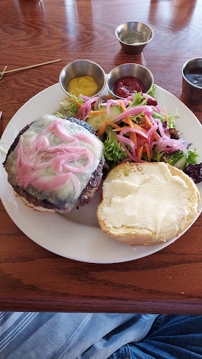 Two friends and myself took a little day trip to Saluda from Greenville. One used to live in Tryon, and had dined at the Purple Onion previously and highly recommended it. Going in is like going back in time, with the old original ceiling and bare brick walls. Great atmosphere. Of course the dessert case is right by the door, so youre thinking about that all during lunch! I had the Apple Brandy Beef Burger with Caesar Mayo, lettuce, tomato, pickle spear and tostito chips. This was a new taste for me, and I found the Caesar mayo to be a delectable choice. Of course, after going by the dessert case, we all had to partake of a sweet treat. All were wonderful, but I was partial to my thin pecan pie, which was rather like a pecan pie pizza! Service was pleasant and prompt. Overall great place, though a tad on the expensive side for a small town like this. Im sure well be back!