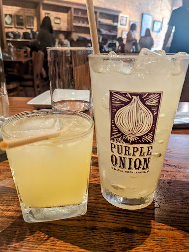 This is our go-to for dinner whenever were in WNC--preferably on a Thursday or Saturday when there is live music. (Though youll need to sit outside the main dining room if you want to easily carry on a conversation with your meal-- options are a covered area thats heated in winter + an open air patio that is available when weather is more temperate.) Good beer selection and some organic wines on their list. Food is locally sourced and everything weve tried has been delicious. Standouts are the pizzas (including gluten free crust) and the spicy shrimp (which you can get with zucchini noodles instead of pasta.) We dont eat meat but friends have said their steaks are fantastic. Be sure to check out the desserts in the case on your way in to see what catches your eye. The Purple Onion takes reservations every night but Saturday. If planning to go on a Thursday, make a reservation. Its a popular night due to the live music and people tend to camp out at their tables after dinner and turnover is low. There is a FCFS bar with about 10 seats where you can also enjoy dinner.