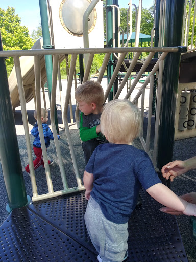 This is an amazing park that is dog friendly has baseball fields and a beautiful playground that is safe and gated for the kids. There is however a broken step on the playground with a very sharp piece of plastic Im sure that the park will fix it soon :-)