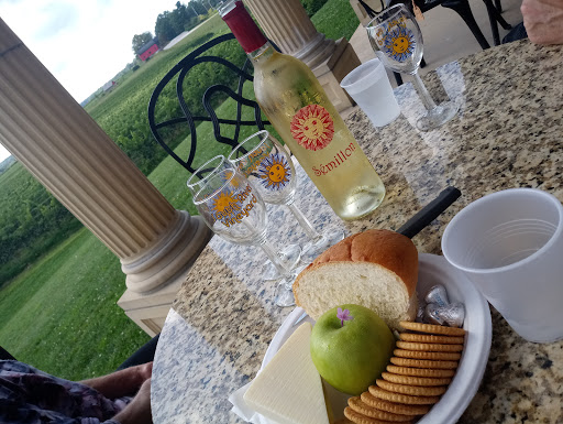 Beautiful setting with a nice view over the grape orchard. Some really good wines. My wife and I went to several wineries today and really enjoyed this place. We tried 8 wines and were impressed with a number of them. Tasters were 4 for $5. They did not have food, but a number of patrons brought their own. It is a great place for a picnic. The server was friendly and answered questions. We tried three reds, four dry white wines and an ice wine. We tend to drink dry wines, but will have port on occasion. Of the reds, the Trinity was our favorite (it is listed as their most popular red), Karma came in a close second. Neither of us cared for the Exodus. I wish that we had tried the pinot noir. Semillon was the white that we liked the best. It had a fuller taste and was just different than other wines that Ive had. I think it was more off dry than dry. Next time I go out, Ill pick up a bottle (I wish I had on this trip). I liked the pinot grigio second and my wife like the dry riesling. The Chardonnay was the first wine that we tasted. At first we were impressed, but after comparing it to the other whites, it just wasnt as good. (If you like dry whites, you must visit Harpersfield Vineyard, which has some outstanding whites). Finally, we had never had an ice wine before, so I didnt know what to expect, nor can I compare it to other wines that Ive had. We tried the Blush Ice and I was surprised at how complex the flavors were. I was expecting something a little sweeter. Overall a very nice desert wine. Again, I cant compare it to other ice wines, all I know is that I liked it. Overall, a great place to visit. It is a beautiful setting with some really nice wines.