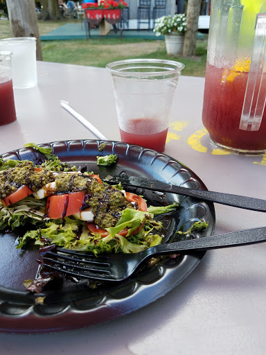 Sorely disappointed! Staff needs customer service education! We arrived around 4pm on a Thursday afternoon. No one looked up from what they were doing to greet us or even indicate that we could sit wherever we wanted. ( Saw 3 groups come in after us and had the same experience). Patrons should not have to wait to be greeted or stand there and guess what they are supposed to do to get service. I walked over to the right side of the bar/restaurant to view a chalk board with the wines listed on it. One waitress was rolling silverware, looked up at me and never said a word! Appalling!!! No descriptions of the wines listed on the chalkboard, just the names. Another server finally came and delivered wine list and menus with no greeting or welcome. I have to say Im glad we decided not to order food. It was greatly apparent that they must get enough business over the summer months to not care how their guests are treated, what kind of service they deliver or the overall experience of their patrons. Best I can say is that if you like sweet wines, theyve got them. I call my experience SOUR GRAPES!