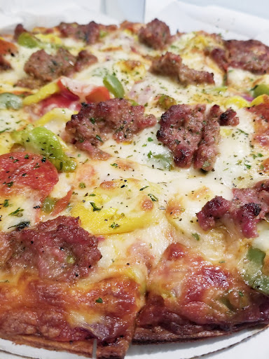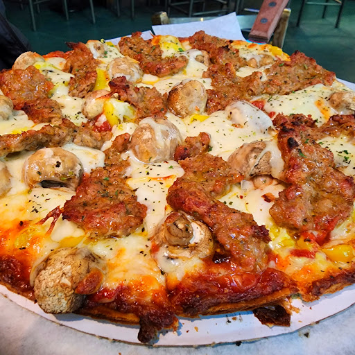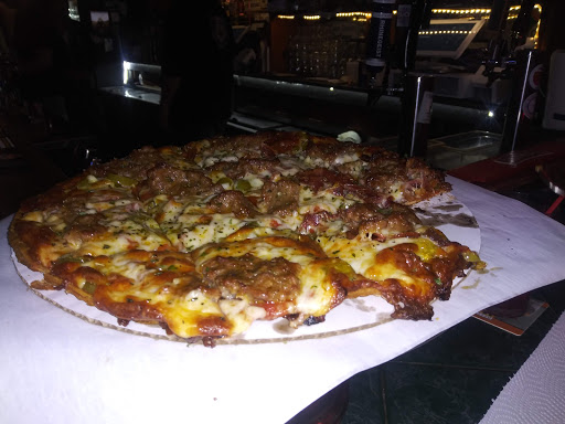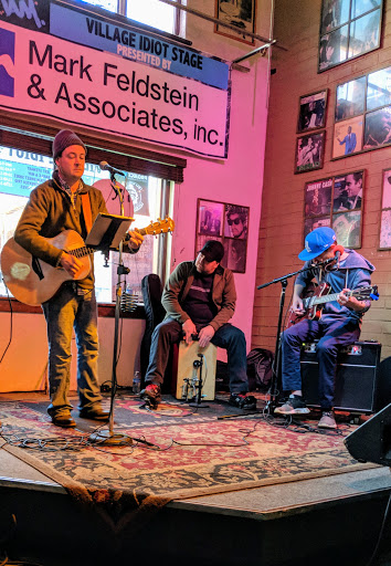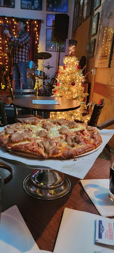 Funny thing for the village idiots, they make the pizza in only one size! lol. However, it was very good thin crust pizza, and plenty for 2 or more. Service was decent, no problems going to the bar or the kitchen to order a drink. The only real drawback to this place was that this particular band (Kentucky Chrome) was a bit too loud for such a small place, but still their music was very good. Overall, a thumbs up experience! Just maybe not the best place for lots of conversation as its quite small for a band....but 7 days a week with live music is great! Ill be back. OH, and FYI the picture shot is from one corner of the bar to the next..heh! The whole bar is roughly 60 foot by 60 foot. My ears are still ringing a bit from the band, and shouting a bit to talk. But, only been there once, could have been the band.