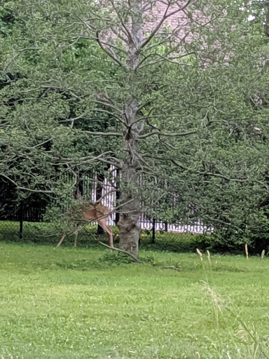 Has a nice playground area and pavilion. Has corn hole sets available for use and nice green space.