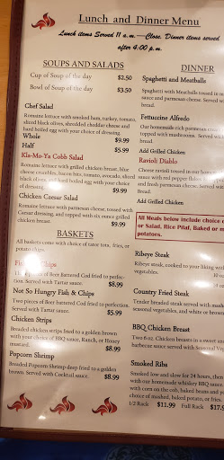 Ha ha ha...5pm Friday. Sign says $5.99 dinner. Little hungry so thought Id try it. I was told, "Well thats not tonight. Instead you can have the fish special for $19.99!" Took a picture of the sign in the front, showed them. They said sorry. BTW.. the waitress was very nice. Can you say FALSE ADVERTISING! ! What do you say?