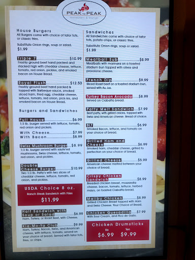 Visited to hang out at Peak to Peak for Sunday night football. The $10 prime rib was awesome and the IPA is one of the best I had. Little bar seats about 8-10 but its nice. The bartender was good as well. The restaurant is clean and inviting. Didnt gamble so cant help you there.