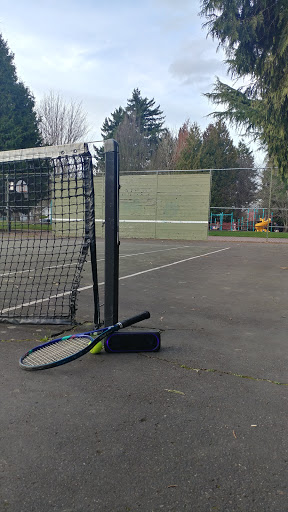 This is an excellent park that has a full basketball court, full two tennis courts, two play grounds and during the summer the sprinkles turn on. It also has a baseball and bathrooms with a drinking fountain. Plenty of parking on the side streets. However, recently in the news there have been several violent crimes at the park, hence the 4 stars. Overall great park. Usually not busy.