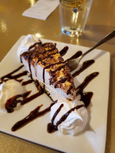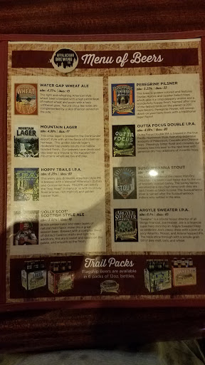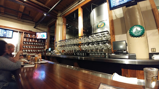 I love their beers. I love their logo. The atmosphere is nice, with exposed beams and high ceilings. The bathrooms are clean. There are TVs but they dont dominate. The meals and desserts were very good, especially for a brewery. Our server was pleasant. However, after announcing that she wasnt busy it took over 10 minutes for her to bring us our beers. The rest of the service was equally slow, even though they werent the least bit crowded on a Saturday night. And again, in light of the many empty tables available, we were seated adjacent to the front doors and the hostess station... Still, wed go back in a heartbeat.