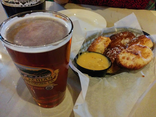 I visited both the Harrisburg and Gettysburg locations. Loved the atmosphere and live music in Harrisburg. The staff was also exceptionally friendly there: A manager even came to check on how we liked our meals. The mustard they make is amazing, and we wish they would sell it! The beer was good, and we tried almost all of them between the people in my group. My favorite was the stout. I also liked the wheat ale and the hefeweizen. The birch beer, root beer, and ginger beer were all excellent. The food was also decent, especially their homemade chips and bbq pork. The Gettysburg location was a good spot for lunch within view of the battlefields. Laid back, cozy atmosphere there and friendly staff.