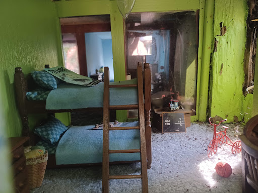 I like the idea behind Tiny World, and was hoping it would be cute for my daughter. But unfortunately it seems like with Ernests passing, or maybe a bit before that happened, the maintenance became too much. Many of the buildings have boarded up windows, broken lights, interiors that are toppled over from a squirrel or something, paint peeling, moss growing on everything, etc. The pathway needs weeding and has some broken glass on it as well. None of the lights or lamps were on when we were there. There is a cute water-powered mill that was not operating when I was there. Its a shame, really. You can see how cute the place could be, if it were cleaned up and given some TLC.