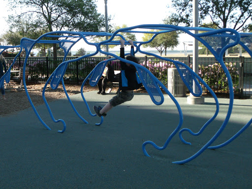 Parking is plentiful. Playground is well designed and maintained. Its populated by suburban moms who seemed to be more interested in their phones than their kids. The memorial was beautiful and I took the time to teach my son what it was. Some pictures had been placed and it was moving to explain the reason to my 4yr old. The pier is pretty awesome and I would recommend checking it out.