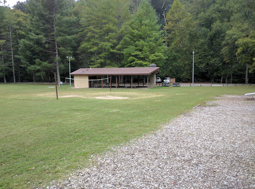 The campground in this park is called Four Mile Creek Campground. Enter from the 70 side and go straight down the main road. The campground is on the right. Its easy to miss, so go slow. Checkin is at a little shed at the campground. The shed was staffed by an unprofessionally dressed girl who didnt offer directions to our campsite and seemed put out when asked for a map. This campground feels separate from the rest of the park. Its located a distance from most of the parks amenities and does not feel as well maintained as the rest of the park. The campground is very tight for larger rigs. The road is narrow with low branches that need trimming. We came in on a Friday (big mistake). The park was full. Most spaces do not have enough room to park cars, so people just park their cars hanging out into the narrow little road. Try negotiating a fifth wheel through this mess. Not fun. The campsites are very tight for a state park. We were in site 118. This site is not angled properly, so parking a 37 footer in this space was very difficult. It was raining when we came in and everything was so muddy. The gravel sites need the gravel refreshed badly. The park itself is pretty and seems to have a lot to offer, but Id find a different place to camp if I were to do it all again.