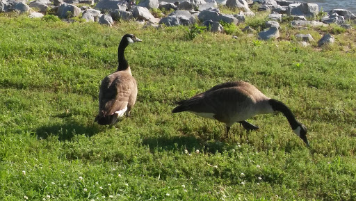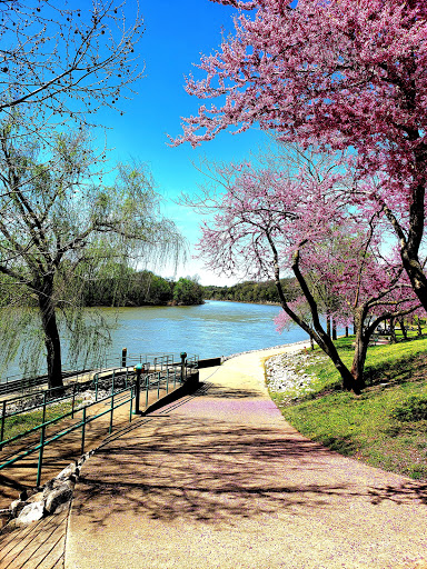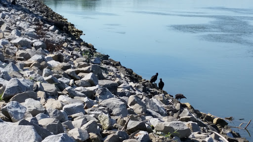 Nice area to take a walk and catch pokemon if you are into that. There are fishing spots along the walk and a boat launch area. Restrooms and a kids park are available. Its unfortunate that all the ugly businesses are clearly visible from the walking path, but the ruver is nice to look at.