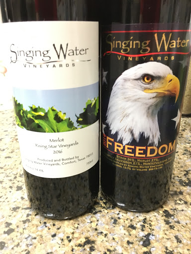 On a recent trip to Kerrville we planned to take in the wineries of the Comfort Area. Becker was the main draw due to their reputation, but Singing Waters became the Star of the trip. We like Reds and so do the people at Singing Waters. They have wonderful full bodied reds from Texas Grapes. Check out their Freedom Label. Ask for Ann.