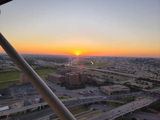 The Reunion Tower is one of those tourist attractions you should visit at least once. You take an elevator to go up 470 feet in about sixty seconds and then get to walk around the Geo Deck of the tower and get a breathtaking 360 view of Dallas. The day we went, it was raining so we didnt get to see the sunset. We had to wait until the lightning stopped before they allowed us on to the outside deck. Its worth the wait! No matter how many people are there, they do not rush you out so you can spend as long as you want there. While inside, they have interactive screens to learn more about the well known establishments of Dallas. To go up to this Geo Deck, its about $18 after taxes for adults. Kids under 12 pay about $9 after taxes. They offer a day and night pass for an additional $5. Right before you go up, they take a souvenir pic of you with props in front of a green screen. When you go up, there are photo kiosks where you can select your Dallas background pic and email a copy of the pics to yourself for free. They also offer priced souvenirs of the pics. If you want to get the great 360 view without dealing with other tourists, you can go to Wolfgang Pucks Five Sixty restaurant, which is at the top of the tower and it revolves. We didnt try it. Parking is $6.