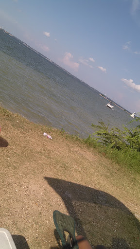 Rough park; its just a parking lot and one Pavilion at the top of the hill. Dont go on the weekends during the summer it can be a bad crowd, but at least the police to patrol often. The water is usually muddy. For Windsurfers the shallow water near the beach and the jetty is a plus. The jetty also provides smoother water than the main part of the lake. Its best for sailing during a south or southeast wind, southwest wind pushes the wind line out in the bay. Tips: There is no boat ramp so dont bring a boat or "jet ski" , muddy water is not good for swimming.