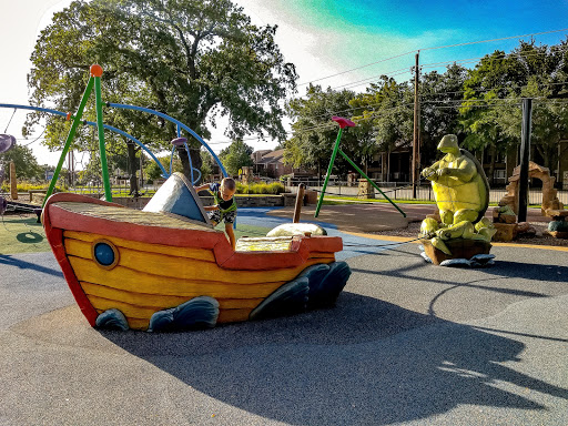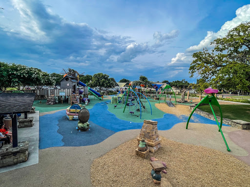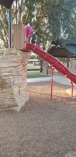 Great park with a wonderful playground called Caseys Clubhouse. One of the more interactive playgrounds around with touch sensitive games, unique climbing structures, and a kids zip line! Theres a covered picnic area and a large field thats great for soccer games. There is also a paid splash park on the premises with some nice waterslides. One of our favorite parks in the Metroplex!