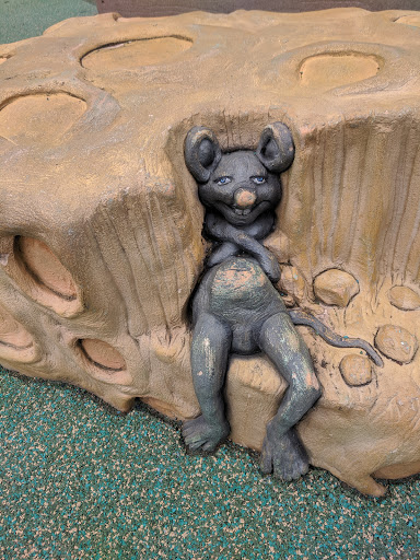 There is some border line evil looking art work on the biggest part in the middle. From multiple red faces on one head, a drunk mouse, and a giant mouth with bent teeth as a conveyor belt... Big park and my child loves the foam flooring.