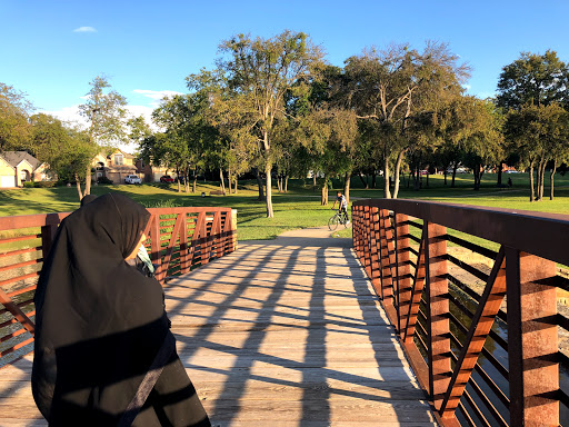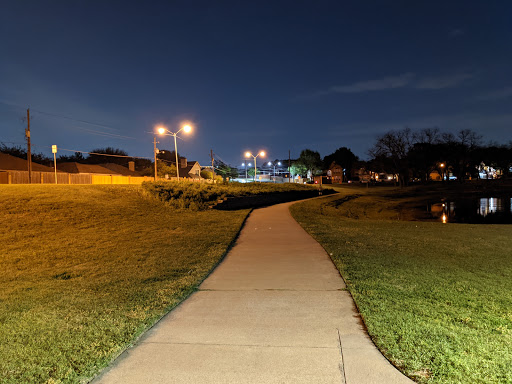 Good place to walk, play football, soccer and other sports. it has playground for kids. lights keep it bright even when dark outside. parking is rather small.