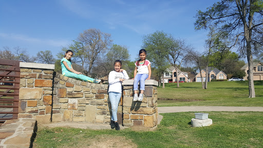 Love the fountain with gazebo. Nice tree shade for the childrens playground. And the water fountain does work. Long trail, but no water fountains on the trail. Great area for frisbees or kites.
