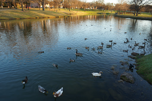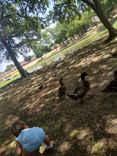 Great park! Paved walking trail, gazebo, playground and lake with lots of ducks, geese and turtles.
