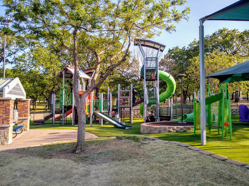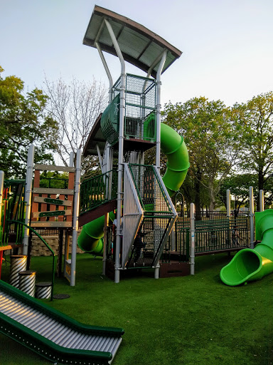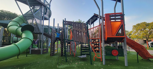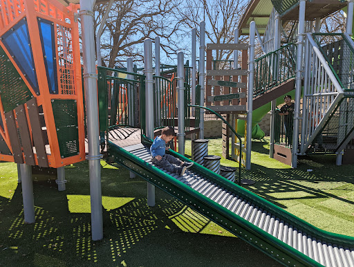 One of my favorite parks to come to. I only dislike the swings now being so high up and small. The kids have some trouble with them and a few will no longer go near them. I like the toddler part of the park because it can exercise their brain a bit with the type of tic tac toe they have set up.