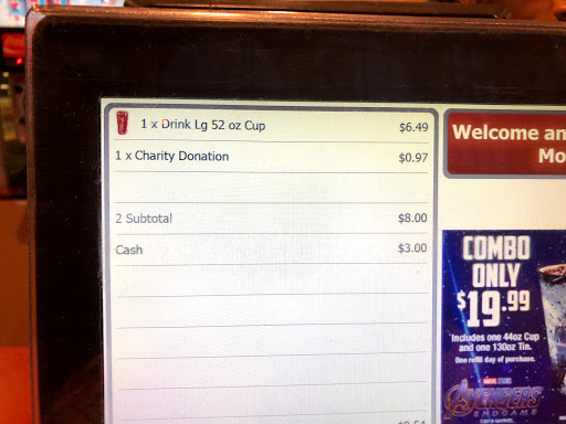 Went on a double date for transformers. Never coming back. Calling the cleanliness level poor would be modest. Upon entering the hallway the odor was immediate, place smells awful, like a combination of urine and vomit. Skipping back: After purchasing our tickets we proceeded to the concessions stand where we paid $40 for a bottle of water, large drink, popcorn, and chicken sandwich, and a pizza. We waited for about 8 minutes and the chicken came out but the pizza had been forgotten. Understandable, stuff happens. They offered to bring it to the seat in another 10 minutes. Thats when we went down the hall and noticed the smell. To be fair the food was prepared attentively and to proper temperature. On the way up to our seats we noticed the whole theatre was dirty and trashed from the previous showing. There are nachos spilled on the stairs, popcorn and wrappers all over the floor and old drinks in cup holders. The seats were uncomfortable and I felt gross sitting in them. When the pizza finally comes, the attendant insists that I come down to the bottom to meet him by waving his strobe flashlight at me despite my having sat on the outside seat nearest him, granted at the top of the stairs. No extra fries or pizza offered, no refund offered, not even an apology. Restrooms, to my great surprise, seemed clean. Take your money to Casa Blanca where everything is clean, food quality and quantity is better for about the same price and they have comfy electric reclining chairs and a clean experience.