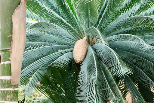 They must be deliberately encouraging the butterflies, which graced the air with their colorful and sometimes iridescent wings. I spotted black and yellow swallowtails, Monarchs and skippers. Something about just one butterflies delights me; bunches of them are even better! There are many small fountains and one elaborate, multi-spouted one, as well as water flowing throughout the gardens. The elaborate fountain made me want to be a fountain designer and invent new, entrancing ways to display and play with the cooling water. Their elaborate fountain has a curtain of water falling into a long pool with cross-firing jets, finally falling into a traditional circular pool. My favorite part was a simple childs toy - a steel pipe marimba for we guests to play with. You strike it with golf balls mounted on rods; it hangs from cables so the pipes can resonate. The pipes are tuned so you cant hit a sour note. What joy to improvise on an instrument that requires no practice, only the love of music and the desire to contrive new rhythms, counterpoints and melodies! Now I want to build my own marimba so I can play some more. I truly believe the best exhibits are interactive, not passive, and the steel marimba epitomizes that concept. The cycad and palm display areas have spectacular glass and aluminum towers with ventilated spiral ramps - they remind me of either Jurassic Park or Mayan temples. The bracing was formed of shining aluminum tubes forming tetrahedra, joined at lustrous metal spheres, to create a a very pleasing form. When you look at them from above, the towers, grotto and gardens and appear strange and alien, but beautiful. As you walk up the spiral ramp, blasts of cooling air zoom upwards immediately adjacent to you, so when the August sun becomes too much, simply step on top of one and enjoy the refreshment! Of course, the palms and cycads, plus bromeliads, were novel and alien to my North American eyes, overwhelming in their variety. Overall, very, very nice, and the only drawback was the heat, which is hardly the managements fault!