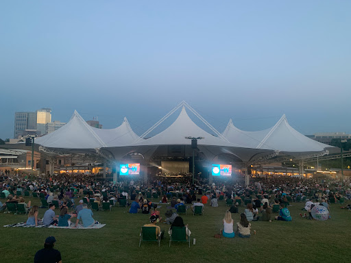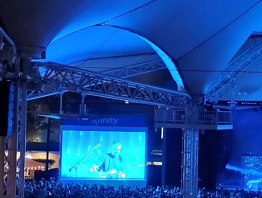 Went to Cynthia woods Mitchell pavilion for my first concert, twenty-one pilots July 5, 2016. I had never been here for anything before and I had my concerns because of our seats being on the lawn. It was not too far away from the stage. I was worried I wouldnt see them at all or hear them that well but I did, very well! Of course I prefer closer seats which Ill strive for next time but it was an amazing experience!! TOP was absolutely wonderful and the pavilion was a great location for this concert and I will never forget this experience. Oh I wont forget they had lawn chairs for rent 6$, I didnt think we should since its a concert well be standing majority of the time. Big water bottles 2 cost us 7.50$ not too terrible considering how hot and thirsty we were. Grass didnt make me itchy, I have eczema and I did sweat but I hardly became itchy so I dont know if the grass is fake or treated but it was okay to sit on for several hours. The lines could use more organization thats for sure..looked like one giant blob of people rather than actual lines for entry. Restrooms not terribly far so thats good. Parking far but not unreasonably considering the venue, nice scenery too.