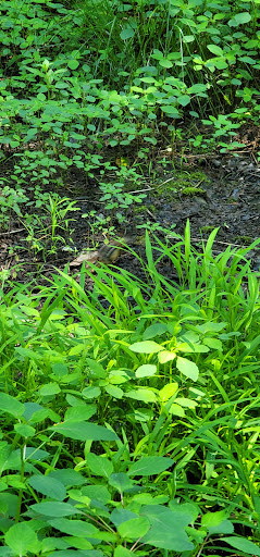 Its not a huge area but this park caught my attention when I saw nearly 2/3 of the place is woods. Ive become so accustomed to parks being open spaces with a a few trees (if any). Especially, not enough to block view of the house on the other side. So as you can guess, to be able to get to be surrounded by tall trees shading the sun a bit was a treat. In the woods there is a pavilion and a separate a fire pit area - the trail to those places is paved making it available for someone in a wheelchair to enjoy as well. In the grassy part theres an open space for sports, basketball hoops and a (currently being renovated) playground. This is a great place to just enjoy being outside with out the noisy distractions that a town or city offer.