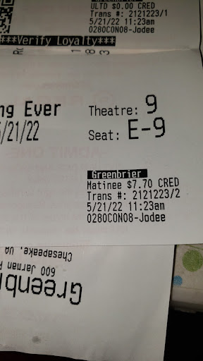 Theater is clean. As most others have said this theater is pricey. It doesnt matter what time you go. There are to many movie theater that offer great prices before 6p. Concession is ridiculous. We usually eat before we go. If you have the rewards app you can get free popcorn and some discounts sometimes. We only pick this theater if we are doing other things in the greenbrier area.