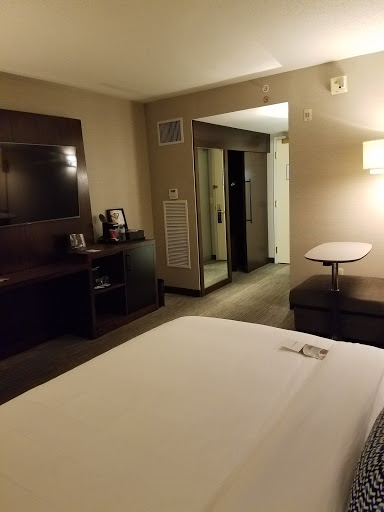 Falls short in some areas – mostly customer service based stuff. 3 Days in a row, breakfast was NOT ready at the advertised time (06:30) within the concierge/executive lounge - causing me to run late every morning!. The breakfast attendant lady was babbling with excuses every morning about why it was not ready. She was a little nasty at times. On Monday morning she claimed that the weekend manager failed to clean-up which caused breakfast to be late. Huh? I saw the gentleman from the front desk come in to get himself a milk, and I asked him to tell his manager that perhaps the kitchen or concierge lounge lady needs some help preparing – and he was clueless and unresponsive. Grabbed his milk and went to the front desk. On Wednesday she babbled about their being only 1 cook in the kitchen and that he gets here at 4:30 am. OK! How many chefs does it take to cook a batch of eggs and bacon? And that is what there was each day – late, followed by excuses. No trash can lines in trash cans within the room. This is highly disgusting! I think they just don’t care enough about the guest to provide this important sanitary feature. Shower was the best part, nice pressure and nice glass door shower. Front desk staff are blah and seem to ignore the guest when they pass by. I think the better option is the Hyatt or Hilton Garden Inn - across the street.
