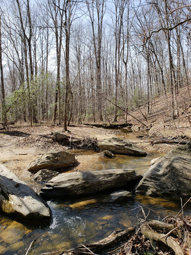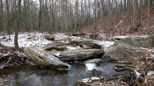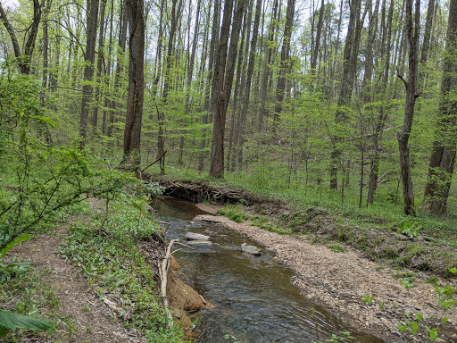 Beautiful hiking trails meander through typical northern Virginia forest. Trails are tended and seem frequented by people from local neighborhoods. Many people walk their dogs here. A stream runs through the forest here. Parking is next to a soccer field just beyond Crossfield Elementary School. The trailhead is at the end of the parking lot. My kids and I have had many fun hikes here.