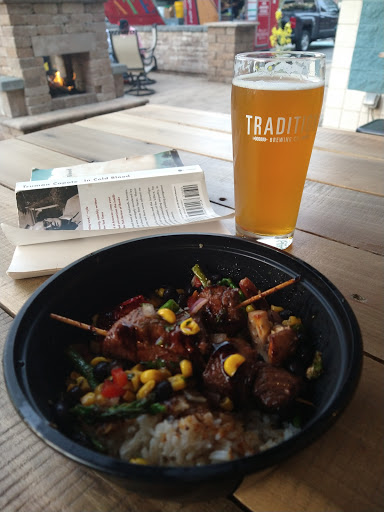 Great experience. I love that Tradition Brewing is dog friendly and I noticed that they are doing fund raisers for local animal shelters. Alex and Jesse provided excellent customer service and the atmosphere was casual and comfortable. The outside area was beautifully lit by the fireplace and firepit. I tried the 488 beer and loved it. Ill definitely be going back to try the other delicious looking flavors.