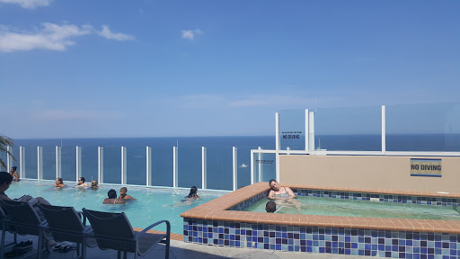 Pretty weak sauce. The rooftop is super cool. The bar was sub prime. No wine. Very limited beer selection (Bud Light, Coors Light, Miller Light). They dont even have the ingredients to make a Mojito. Margaritas are weak. If you enjoy a dozen kids jumping into the pool over and over and over again, and crappy drinks, head on up.
