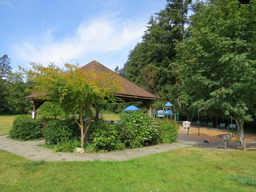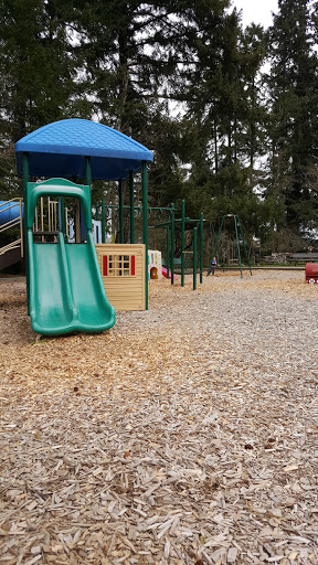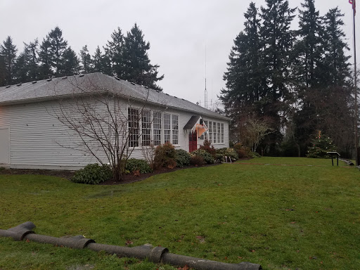 This was the first school house on Fox Island. Its been renovated and is now a great Community Center. Theres a large field in the back with a playground for kids. Community events are often held here