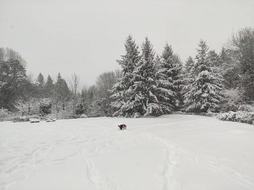 This review is only of he dog park. It is great. Not the biggest park, but it has a lot of interesting terrain. Run up hills, through forested areas, flat areas. In the winter watch out for the water bowls. The water is turned off, so people place the bowls to catch runoff from the roof of the shelter. I am not a vet, but I am not sure that is the best source of water for dogs. I try to keep Dash away.