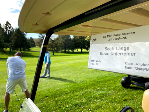 We enjoyed a great round of golf at Clifton Highlands Golf Club. After the 18 hole course we headed UP to check out the sporty par 3! WOW the views up there! The 18 hole course is a great track. While you might look at a short par 4 and say..wow Birdie hole. The greens might take that away from you if you are not close to the pin! Shot placement is critical on some holes to give you a good approach. Signs at each hole give you a good idea of what you need to do. The clubhouse is inviting and the pro shop has what you need! Staff is wonderful and engaging! This course is part of the River Valley Golf Trail with Gopher Hills Golf Course and Red Wing Golf Course. Play all 3!