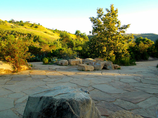 Even though it is called, "Canyons", this appears as a single park. There are a lot of dirt trails for hiking and biking, and some have moderately steep climbs. There are housing developments at the edges, most of which are at the upper edges of the park. One can see the large SOKA University sitting on one of these bluffs. We entered the park from a street called, Canyon Vistas. At that point one starts at a grassy picnic area. Some of the trails are very narrow, and mountain bikers can come down at high speed; so one has to be on ones guard to be able to step aside when necessary. We hiked 5 miles, but there are longer trails available.