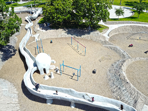 Also known as "the moon park" due to the fun space themed playground. It feels like moon rocks, and my kids love it. We also play community softball here. Biggest issue is the transient population, often near the play area. We watch our kids carefully, since the moon rocks are hard to see over.