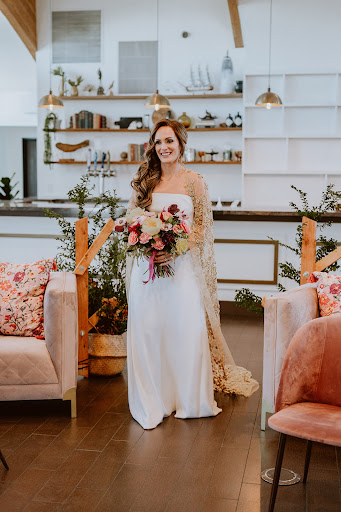 Great, new wedding venue. The upstairs bar served as the cocktail area while downstairs was the reception space, which had exposed brick wall and high barnyard ceilings. There was also a nice outdoor patio space with a fireplace and succulent wall for photos. As a wedding guest, I liked the family-style dinner, but the food got cold while waiting to be passed around.
