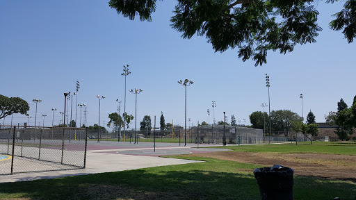 Nice well kept park kind of a hidden location near the river bed that includes a trail and skate park, the park also has nice basketball courts and batting cages