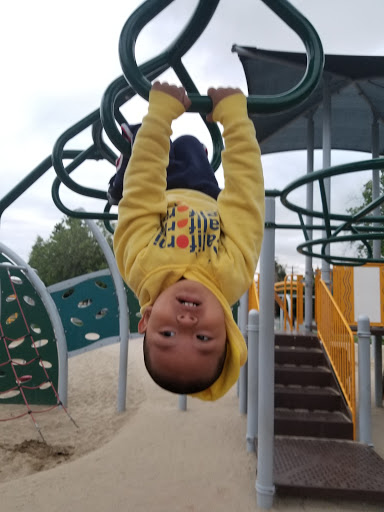 Came to this park I found on the way home. The play ground is nice and the park is surrounded by a nice short green gate to keep children away from the busy street, but the surrounding tree shaded areas are occupied by what seems to be homeless men. I counted 9 to be exact. But hey, the park is a free place for anyone and everyone just make sure you keep an eye on your kids like youre supposed to.