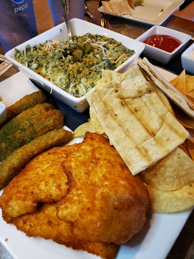 I was invited here by Steph H. for trivia night and some happy hour grub. Im not great at trivia but the company is fun so I decided to go for it. The decor and ambiance is cool. Lots of space and booths to occupy. On that Wednesday night, it wasnt as crowded. We got a spot pretty quick and theres plenty of time to mingle, eat, etc before the trivia fun begins. Happy Hour deals are decent. I was able to get a few selections off the menu and a couple of beers with the damage only being about $15. Not bad. Usually thats the price of one drink only! But that was about two beers and a few food items. Food is hit and miss. Not gourmet so dont expect anything fancy but its not terribly bad either. I had the street tacos, chicken and fries, and an artichoke dip. Pass on the artichoke next time. Not really the best. Overall, great place to hang out with friends, chill, and test your knowledge (might be tricky after a few beers).