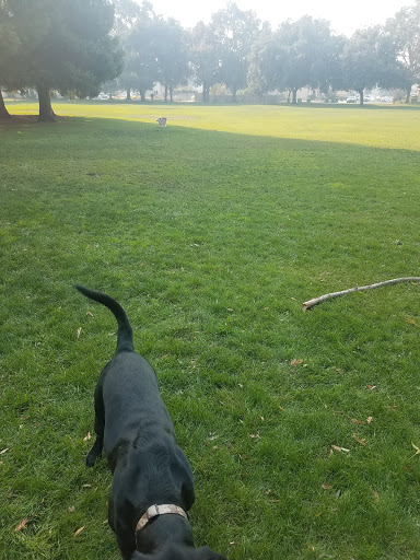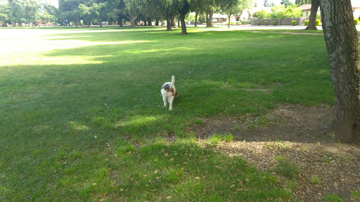 I live near this park and visit regularly. Depending on the time of day, there will be several dogs running free but well behaved. The turf is regularly cut but is made mostly of weeds. There seems to be irrigation issues. There are several holes that could cause an injury if youre not careful. The best thing about this park is the gravel track which is frequently used for walking and jogging.