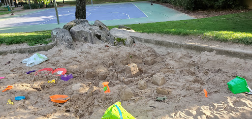Play structure is small. Lots of grass and basketball and tennis courts. Fun rocks/boulders that the kids like to climb on but watch out for snakes.